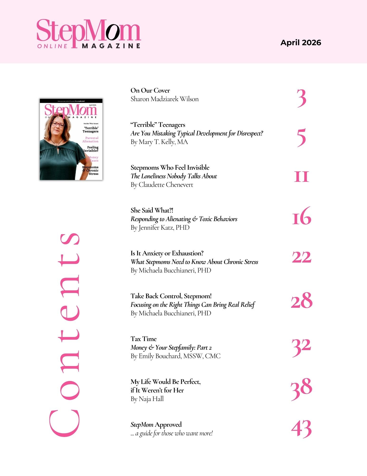 StepMom Magazine is a monthly, online publication. Every month you’ll get access to a downloadable, printer-friendly PDF you can read anywhere, anytime!